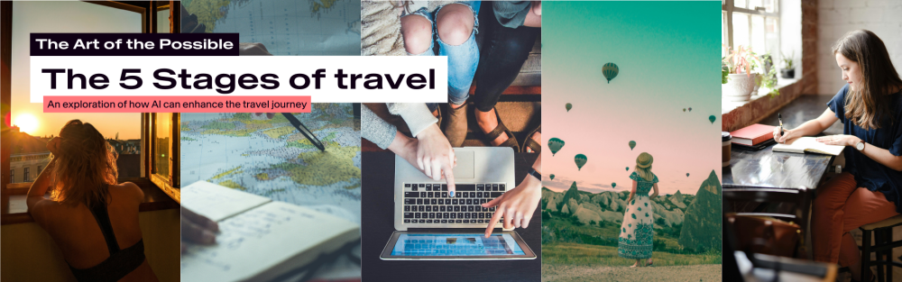 A selection of images representing the five stages of travel: Dreaming, planning, booking, experiencing and reflecting